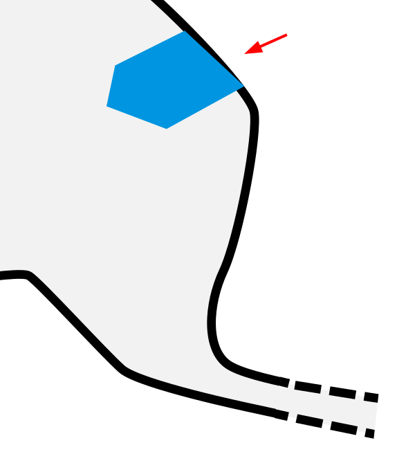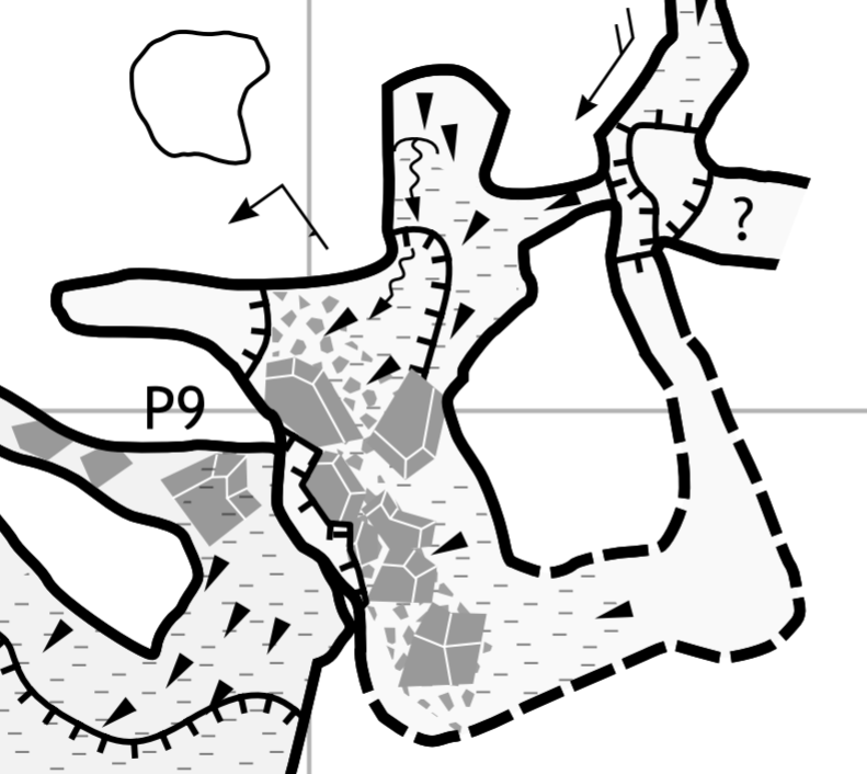 Problem jednak jest taki, że zrobienie wypełnienia wymaga masy pracy. Trzeba właściwie jeszcze raz narysować obrys korytarzy jaskini. Nie da się tego załatwić jednym obiektem, bo brakuje nam funkcji "nie rysowania kawałka konturu".