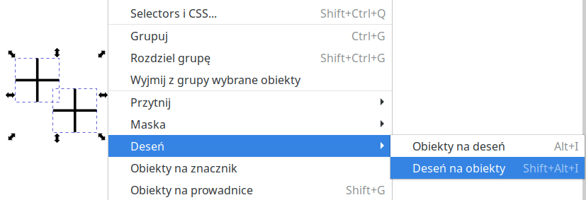 Rysujemy coś, zaznaczamy, a następnie wybieramy Obiekt / Deseń / Obiekty na deseń