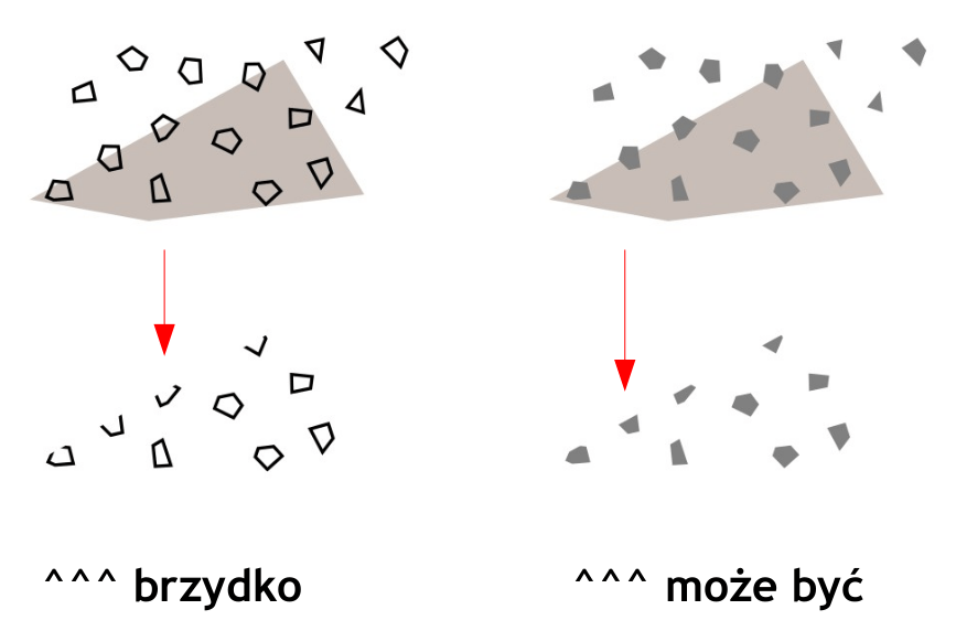 Jakimś sposobem rozwiązania tego problemu jest użycie przycinania. Rysujemy jaskinię jako jeden wypełniony obiekt, a następnie rysujemy maskę, która obetnie nam fragmenty z niepotrzebnym konturem.