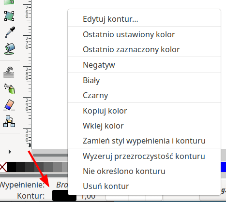 Oprócz bardzo przydatnej funkcji Edycja / Wklej styl (działającej również dla wielu zaznaczonych obiektów!) warto wiedzieć również o menu dostępnym pod prawym klawiszem na polach wskazujących aktualny kolor wypełnienia i konturu.
