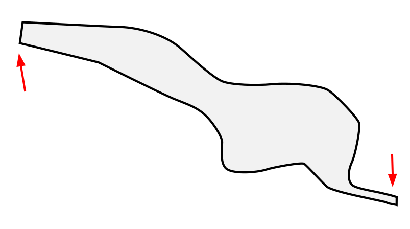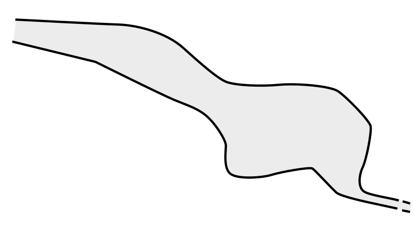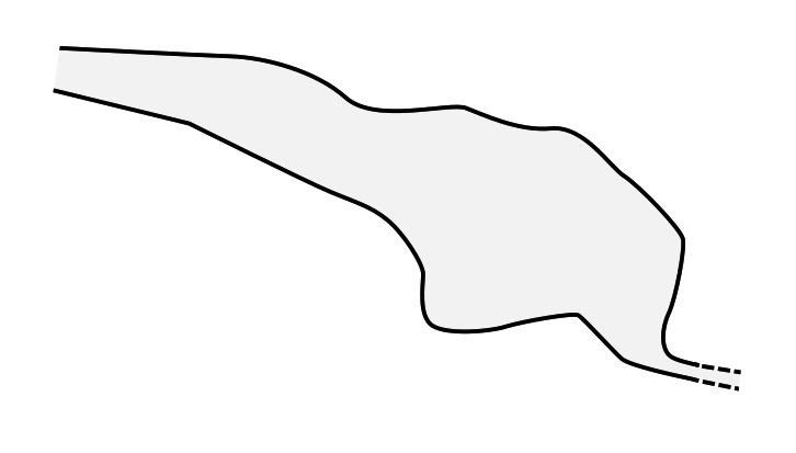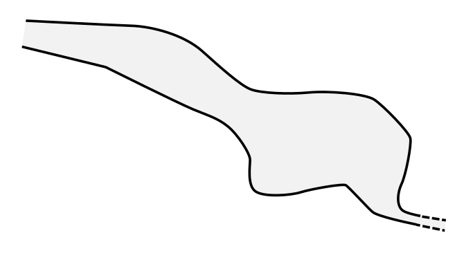 Rozwiązanie tego problemu przy pomocy klonów nie jest może wybitnie eleganckie ... ale pokazuje kilka kolejnych, użytecznych funkcji Inkscape. Demonstrację zaczynamy od narysowania fragmentu jaskini techniką z przycinaniem (omówioną wyżej). Rysujemy go w warstwie Obrys. Załóżmy sobie też pustą warstwę Wypełnienie i umieśćmy ją poniżej warstwy Obrys.