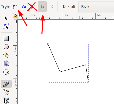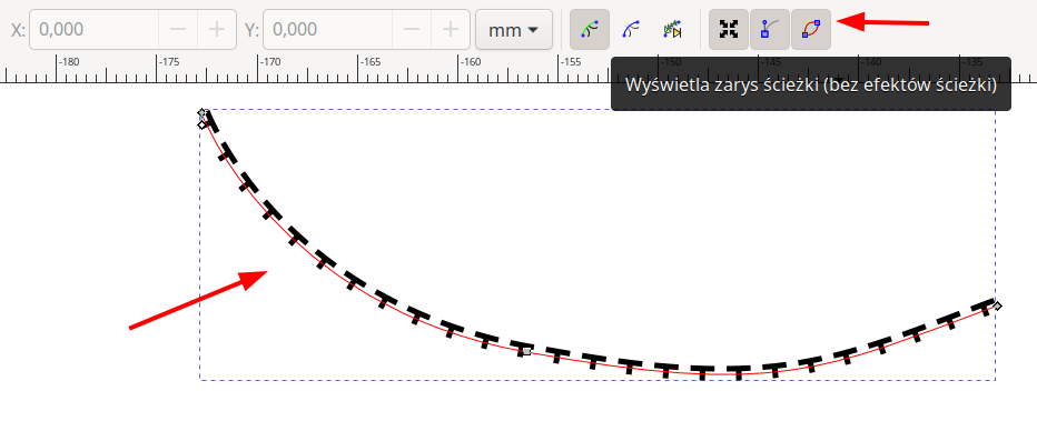 Koniecznie trzeba wiedzieć o ikonce Wyświetla zarys ścieżki (bez efektów ścieżki) pojawiającej się po wejściu w narzędzie edycji węzłów. Oszczędza frustracji.
